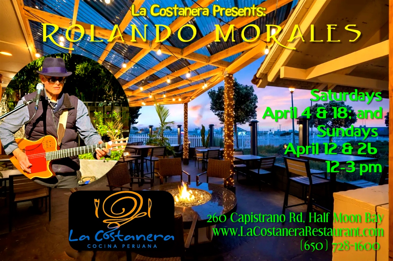 Friday, March 6, Massimo’s Restaurant, 5200 Mowry Ave, Fremont, 6:30-9:30 pm.  After a 3-month hiatus from live music, this fine venue is bringing Rolando back to this Fremont gem, home to generations of authentic Sicilian recipes.  Rolando will kick off Fremont Restaurant Week by providing your musical ambiance in the lounge with world music and popular songs.  Reserve your seats by the music at (510) 792-2000, info@massimos.com.  See www.massimos.com.Rolando Morales performs at La Costanera, 260 Capistrano Road in Half Moon Bay from 6 to 9 pm on March 7, 2026, noon - 3 pm.